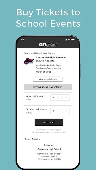 Simple Ticket Purchase: GoFan allows users to browse available events, select their tickets, and make purchases directly from their smartphones. Payment can be made using various methods, including credit and debit cards, providing flexibility for all users.
