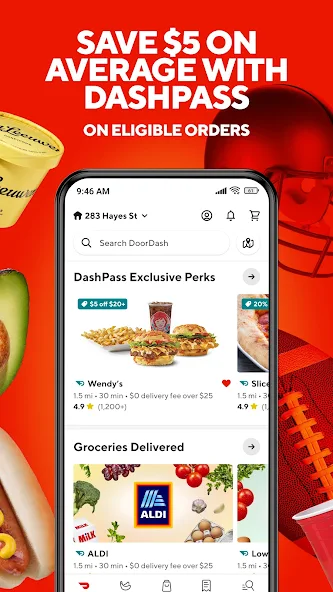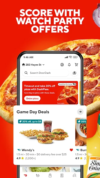 Deals and Promotions: Features deals, promotions, and discounts offered by restaurants and DoorDash itself.