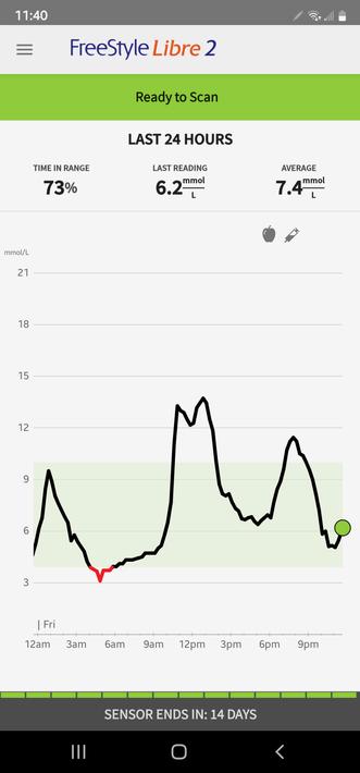 Glucose monitoring: The app allows users to monitor their glucose levels in real-time by scanning their FreeStyle Libre 2 sensor with their smartphone.