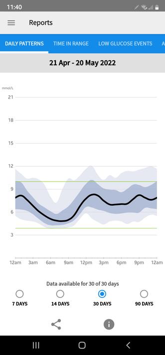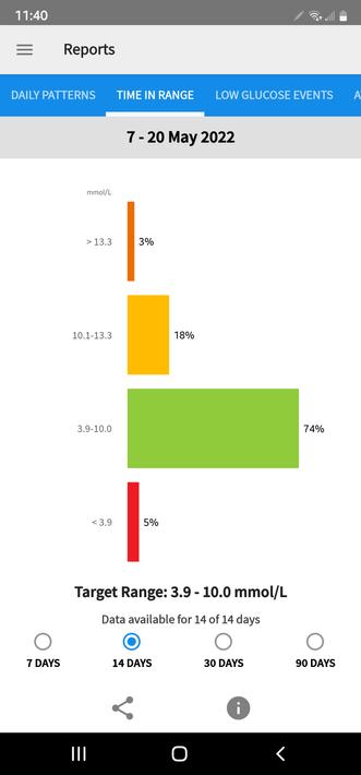 Glucose history: The app stores up to 90 days of glucose data, allowing users to view their glucose history and identify patterns.