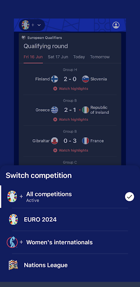 The EURO2024 App is the official mobile application for the UEFA European Football Championship 2024, commonly known as Euro 2024. This app is designed to be the ultimate companion for football fans during one of the most anticipated events in the world of sports. Developed by UEFA, the app aims to enhance the experience of football enthusiasts by providing real-time updates, comprehensive information about the tournament, and interactive features.
